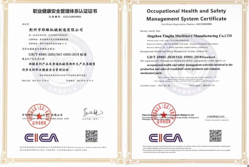 職業(yè)健康安全管理體系認證證書
