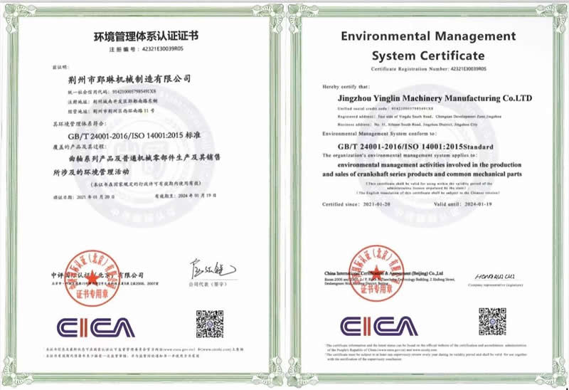 環(huán)境管理體系認證證書
